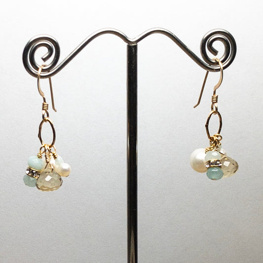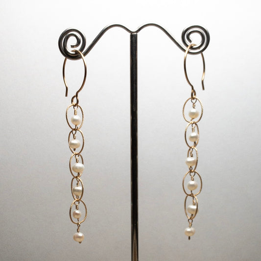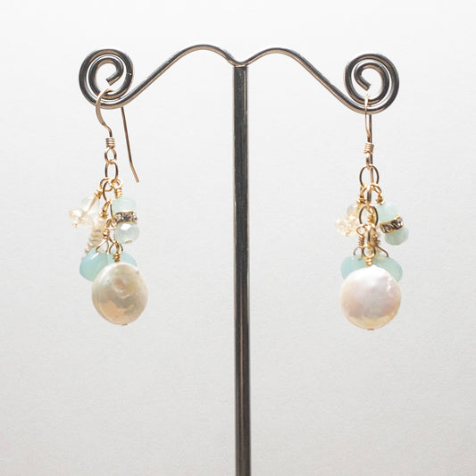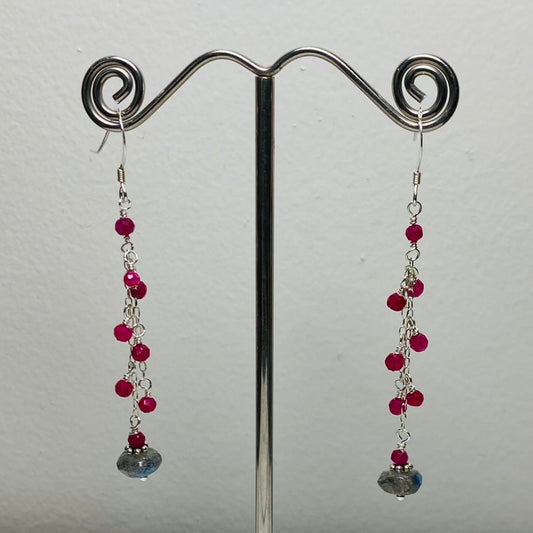 Lustrous Pearl, Rhinestone and Ruby Earrings