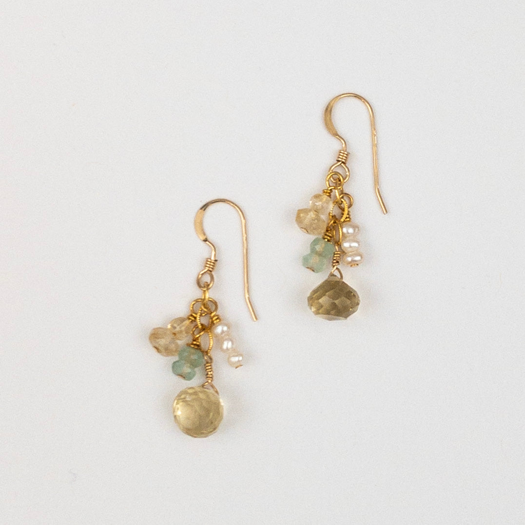 Indulge in the epitome of elegance with our Blooming Earrings. This exquisite piece features a delicate cascade of gemstones culminating in a captivating lemon quartz briolite. Enhance your style and radiate confidence with these luxurious earrings. 14K gold-filled findings. Made in USA. 1.25" long.