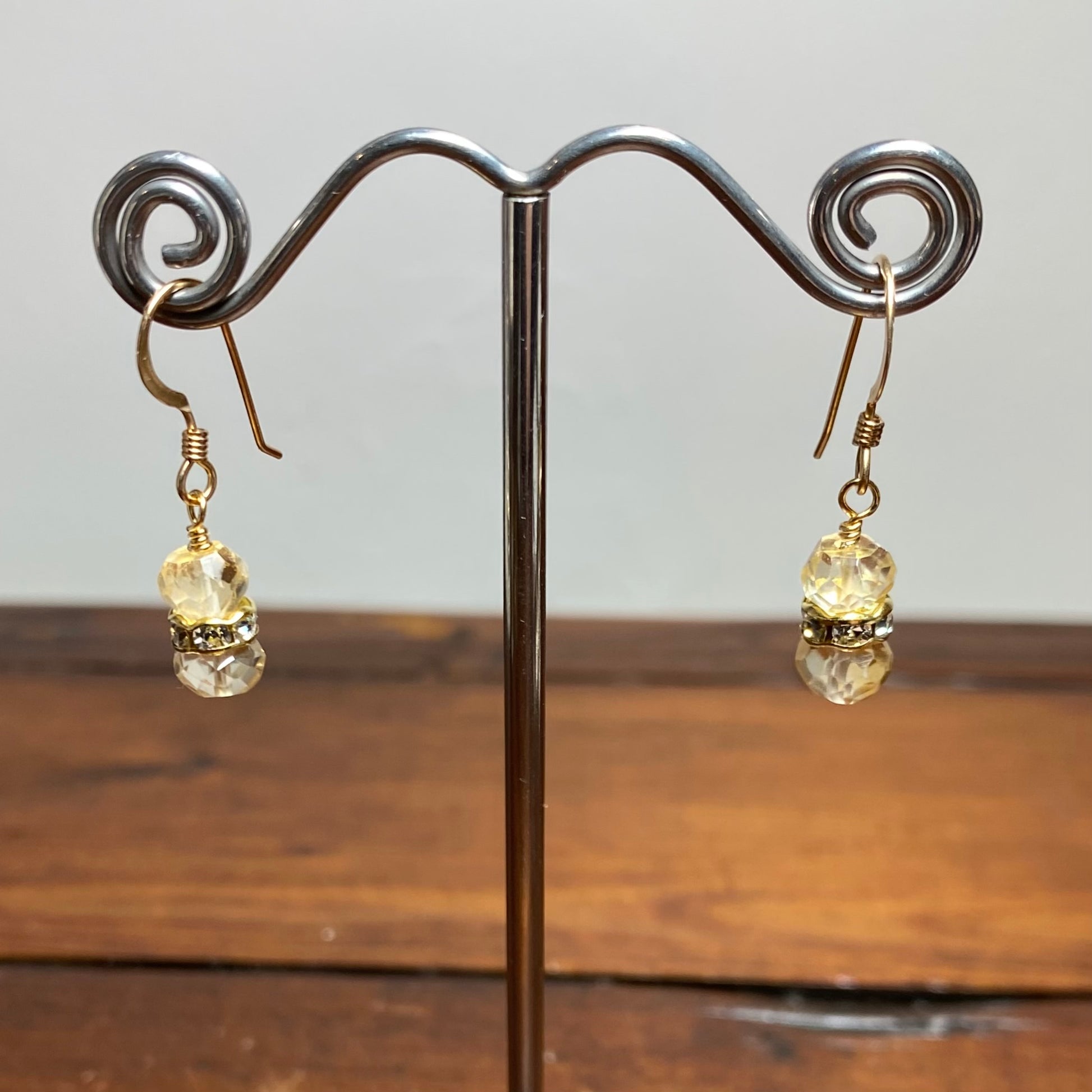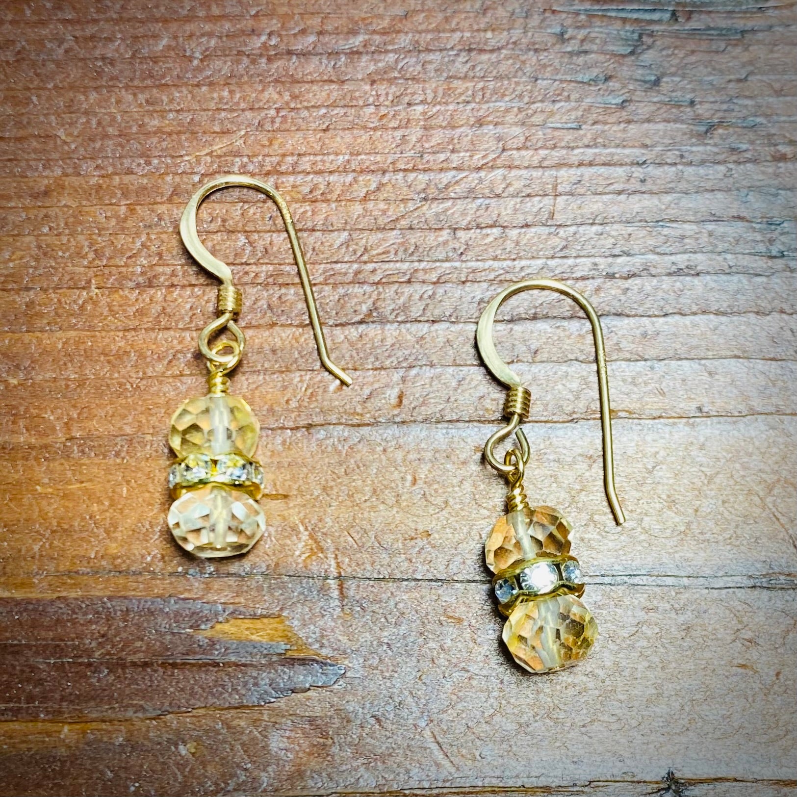 Timelessly classic, these elegant earrings showcase Citrine rondelles accented with a single rhinestone bead. 1.125" long. Made in USA.