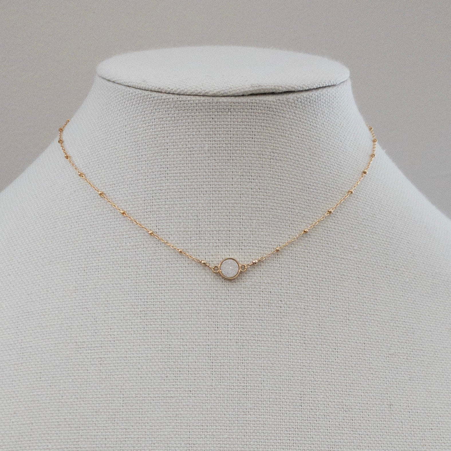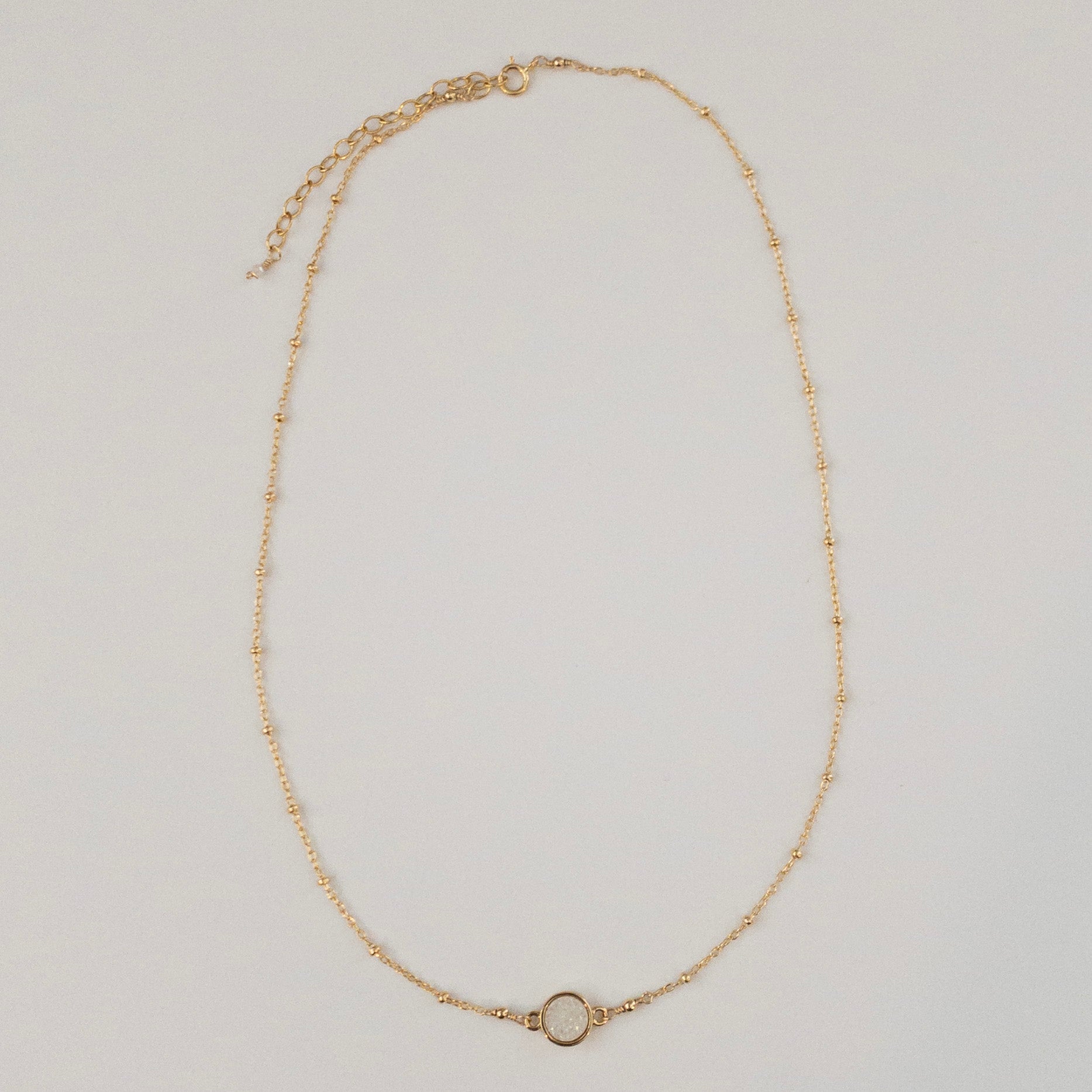 Induce envy with our Druzy Dream Necklace. Featuring a single druzy connector on a gold satellite chain, this necklace exudes elegance and sophistication. Transform any outfit into a statement piece with this exclusive and luxurious accessory. 14K gold-filled spring clasp. Made in USA. 15" long with 2" extension.