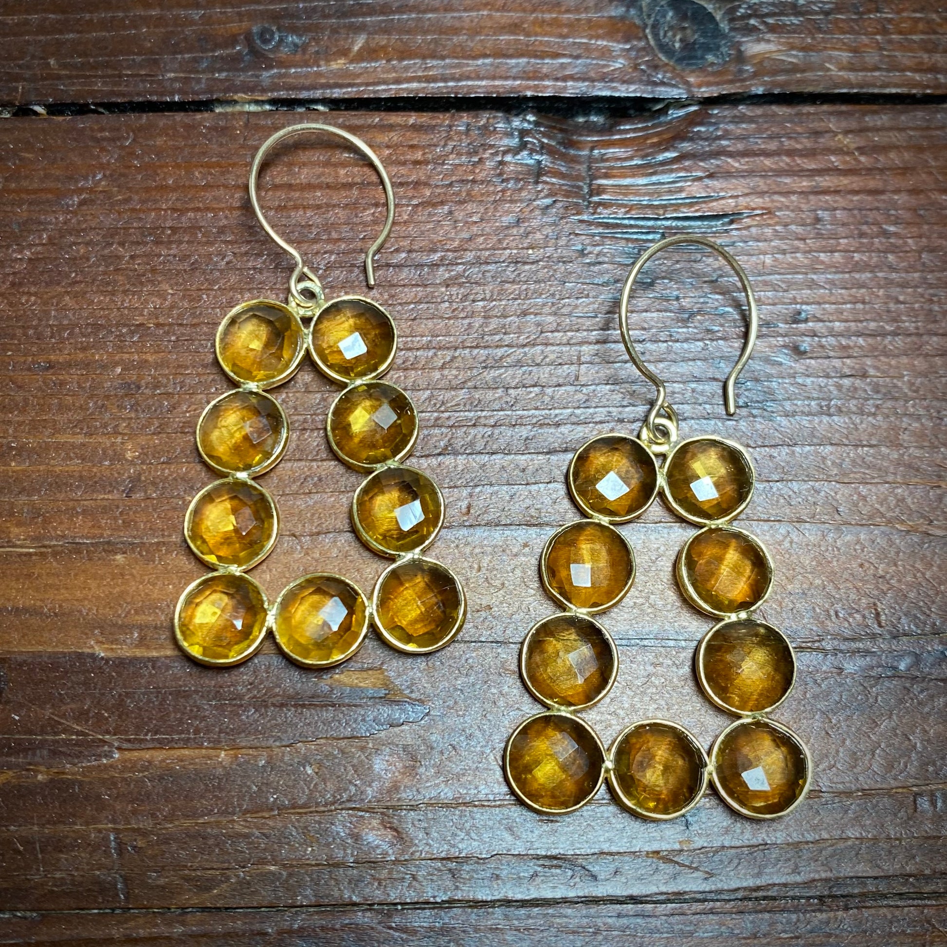 These earrings feature a contemporary design, with faceted citrine gemstones as the focal point swaying gently from gold filled ear wires. 1.125" long. Made in USA.