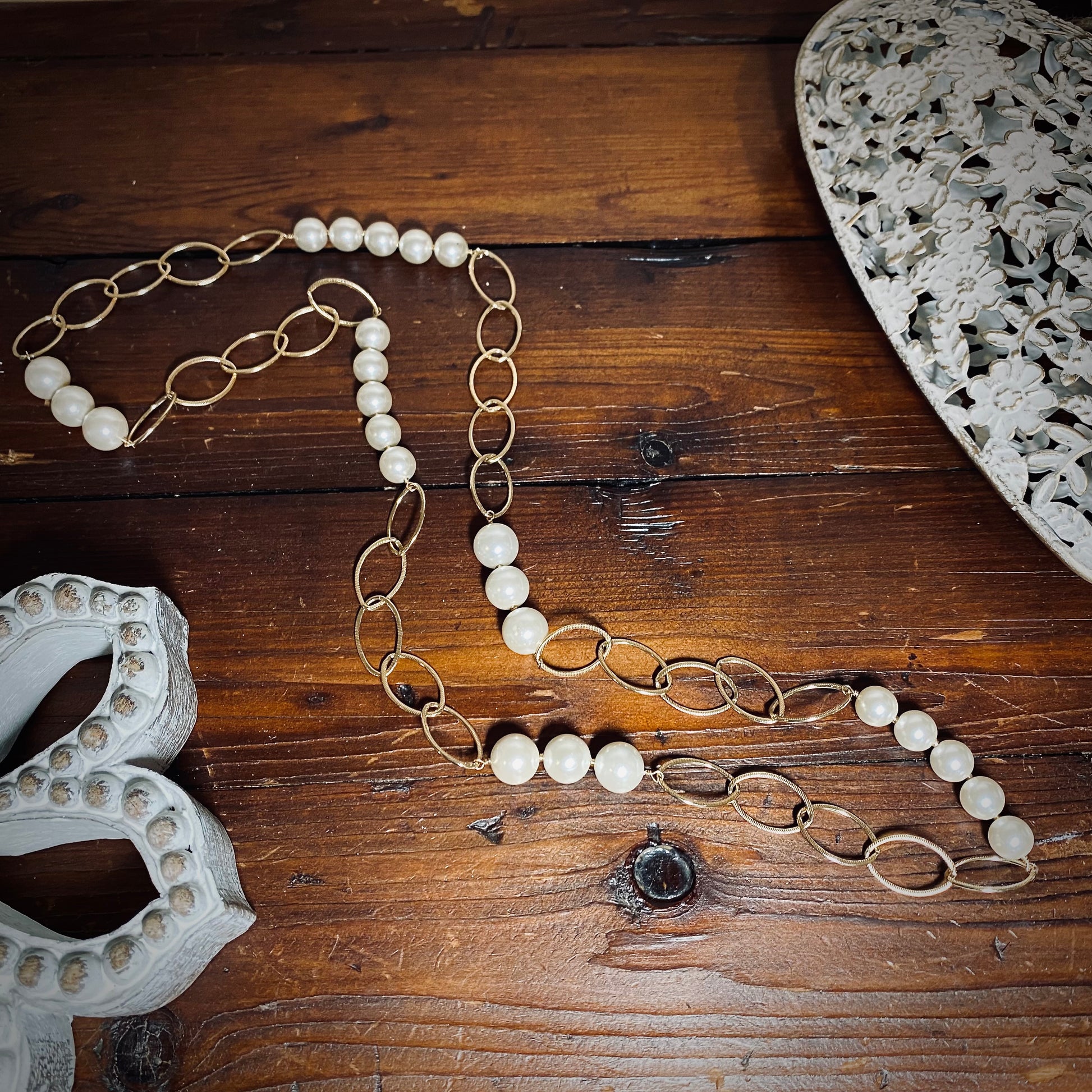 Pearls and Gold Links Necklace