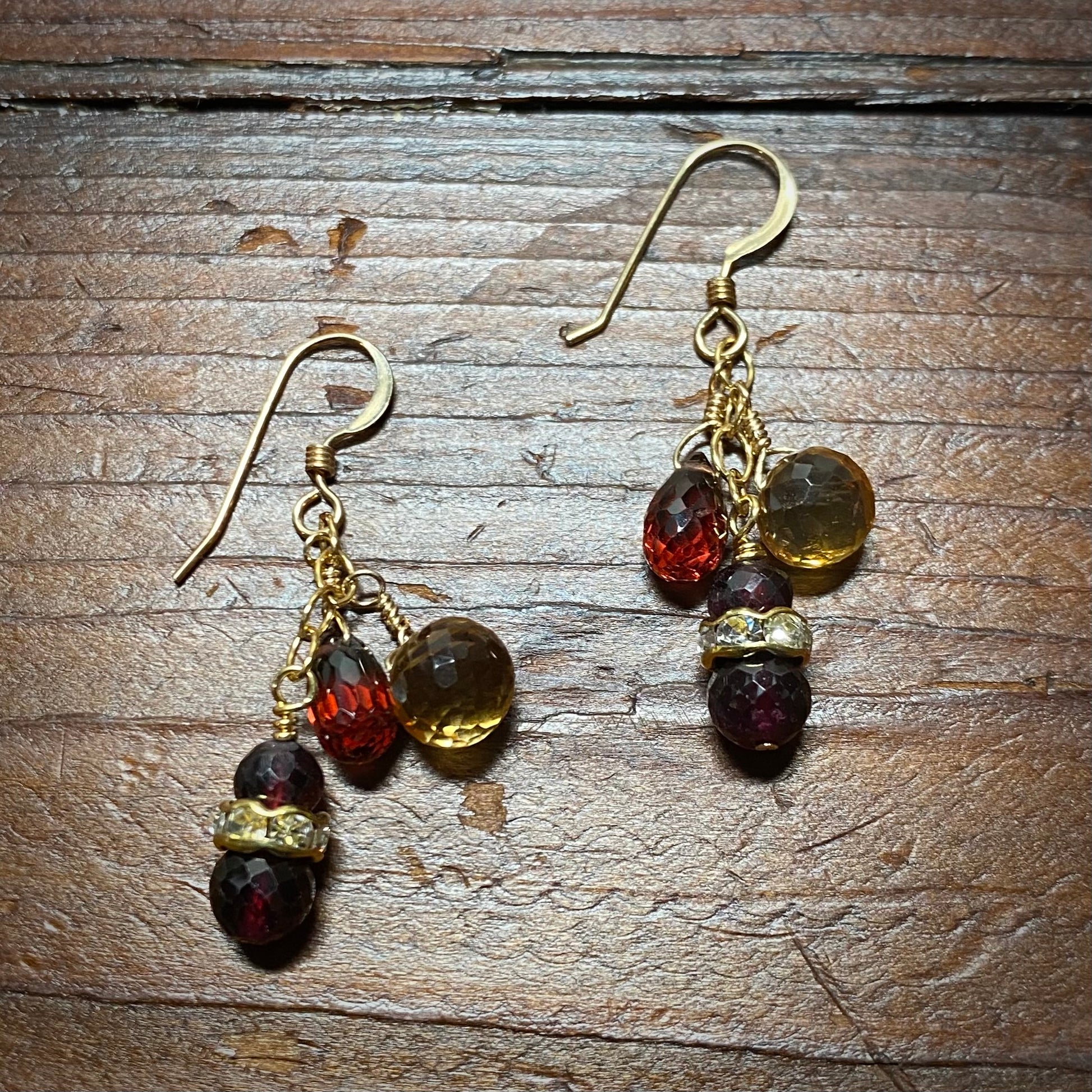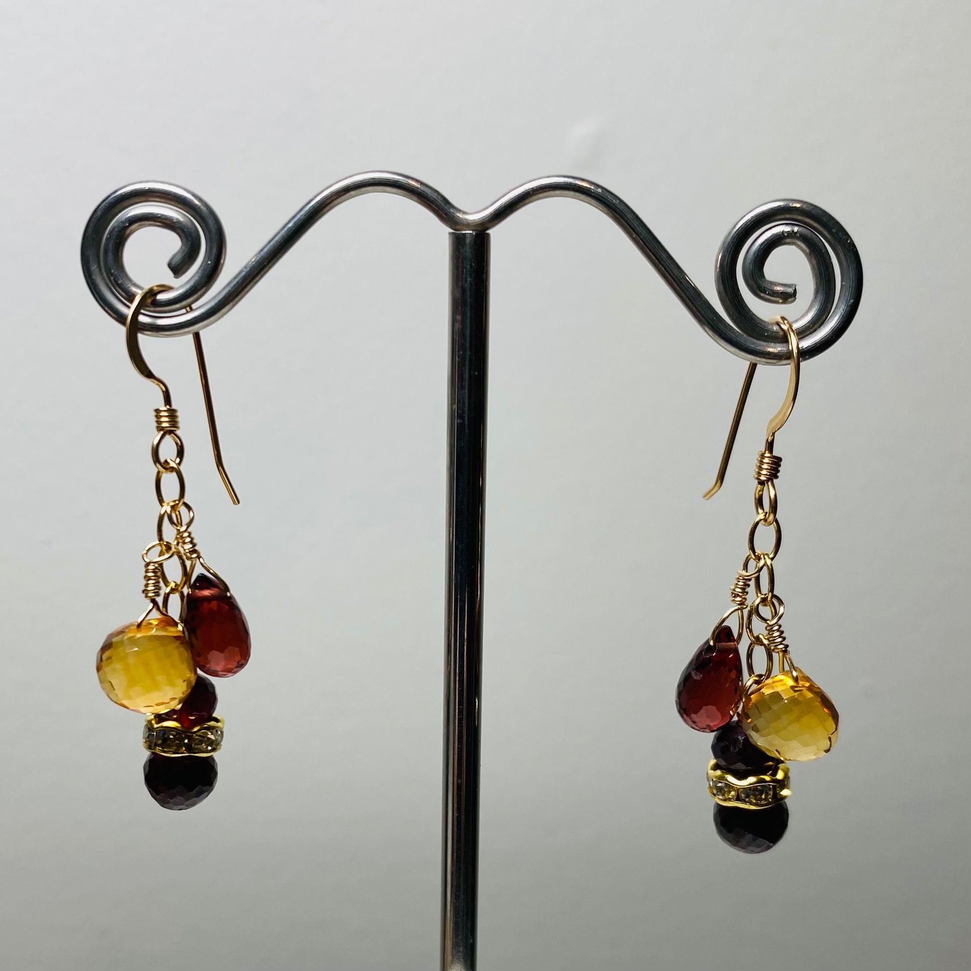 Dazzling Citrine, and Garnet Gemstones gracefully dangle from 14K gold-filled chain links in these elegant earrings 1.625" long. Made in USA